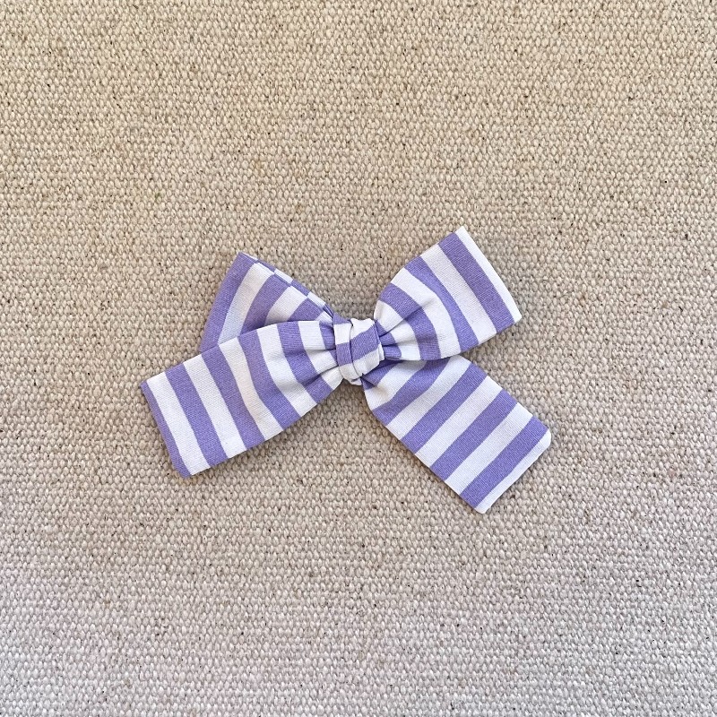 Le grand noeud est en coton rayé violine , il mesure environ 9,5 cm .
