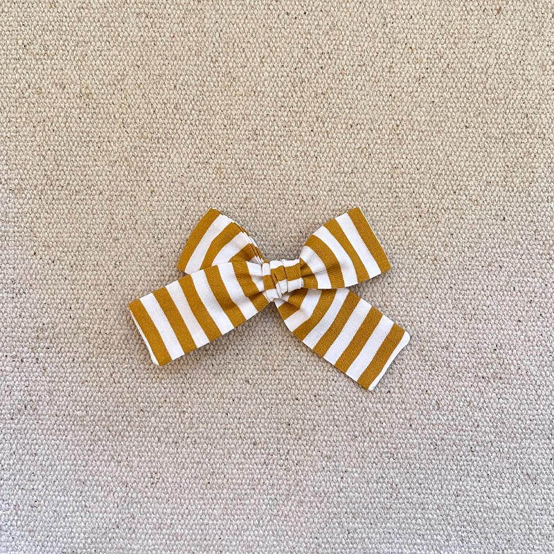 Le grand noeud est en coton rayé maïs , il mesure environ 9,5 cm .