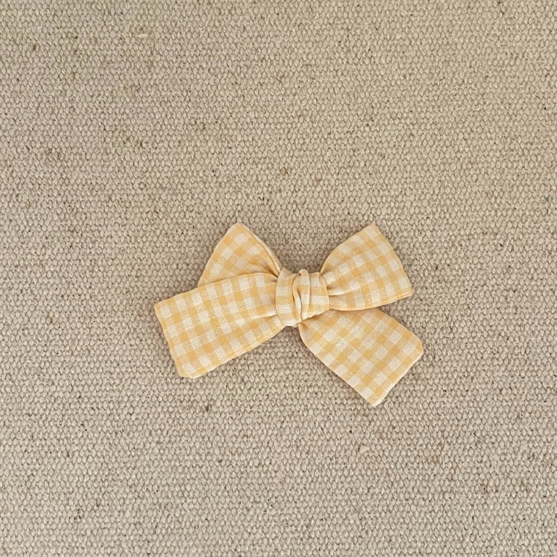 Le noeud antiglisse est en coton vichy jaune , il mesure environ 7 cm .