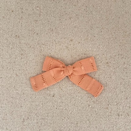 Le noeud est en coton plumetis mandarine , il mesure environ 8 cm .
