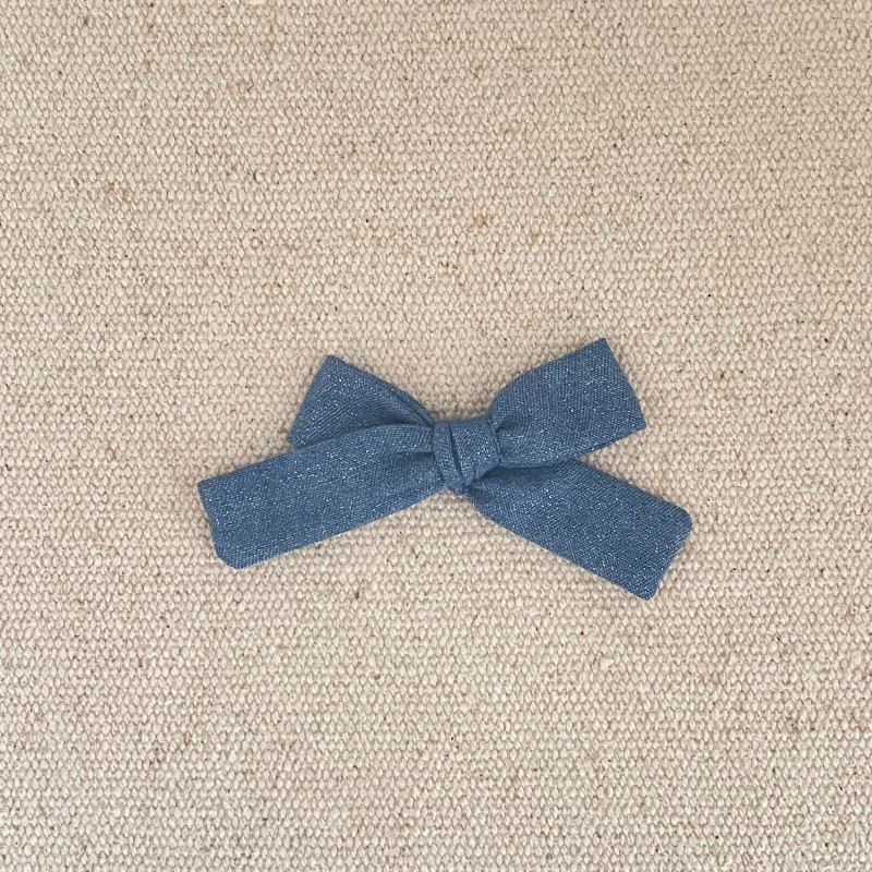 Le noeud est en coton aspect jeans pailleté , il mesure environ 8 cm .