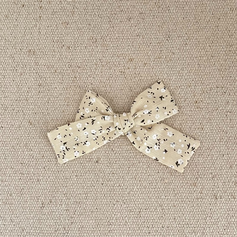 Le noeud est en coton avec des fleurs , il mesure environ 9,5 cm .