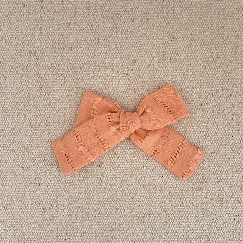 Le noeud est en coton plumetis mandarine , il mesure environ 9,5 cm .