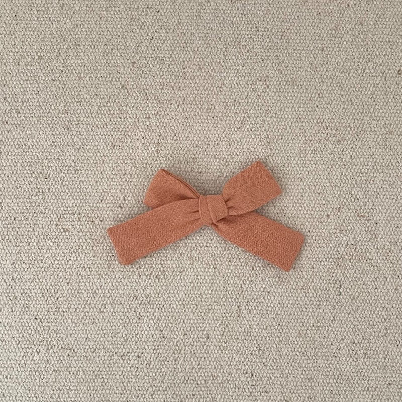Le petit noeud est en coton lavé argile , il mesure environ 8 cm .