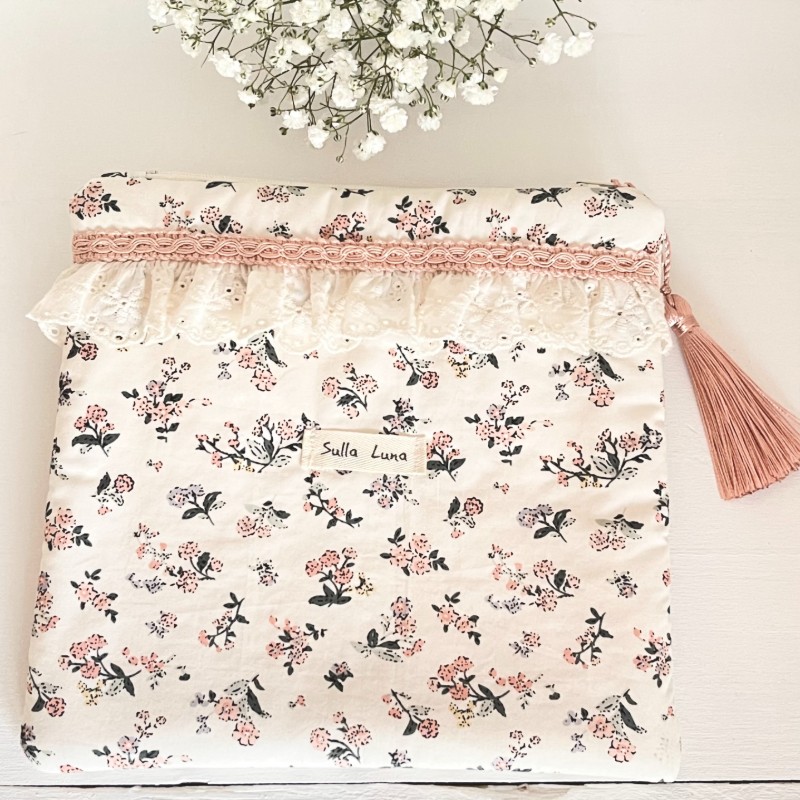 La pochette est réalisée avec soin dans une belle sélection de tissus que j'ai matelassé .