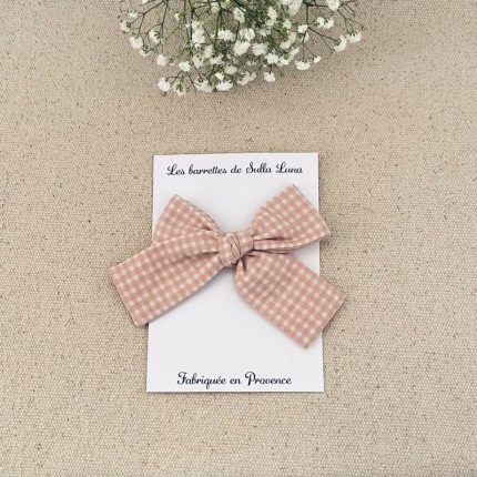 Sa pince clic clac avec petit peigne mesure 2,8 cm , le noeud est cousu dessus à la main .