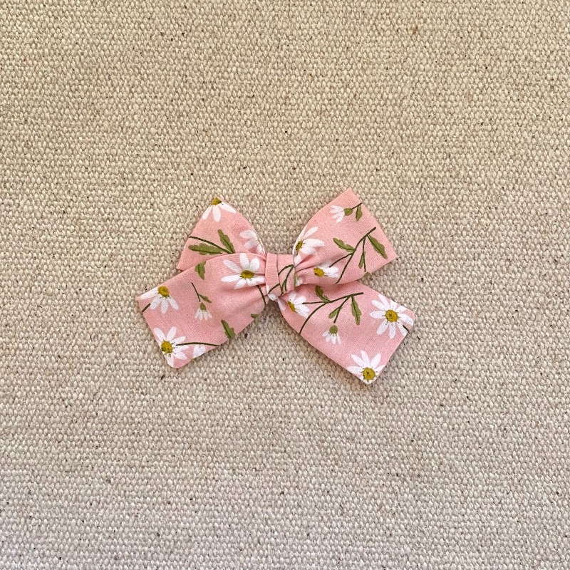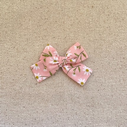 Le noeud antiglisse est en coton rose avec des pâquerettes , il mesure environ 7 cm .