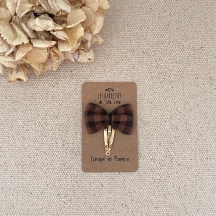 Le noeud est en coton vichy chiné noisette , il mesure environ 4,8 cm .