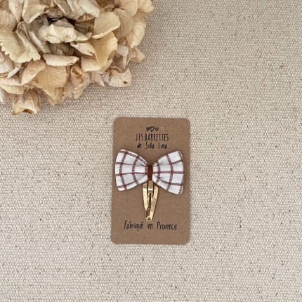Le noeud est en coton vichy de couleur terra , il mesure environ 4,8 cm .