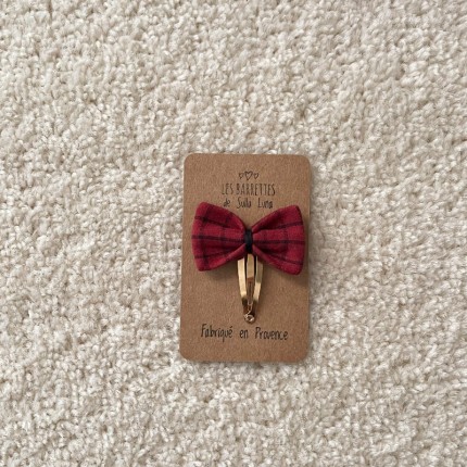 Sa pince doré rosé mesure 4 cm , le noeud est cousu dessus à la main .