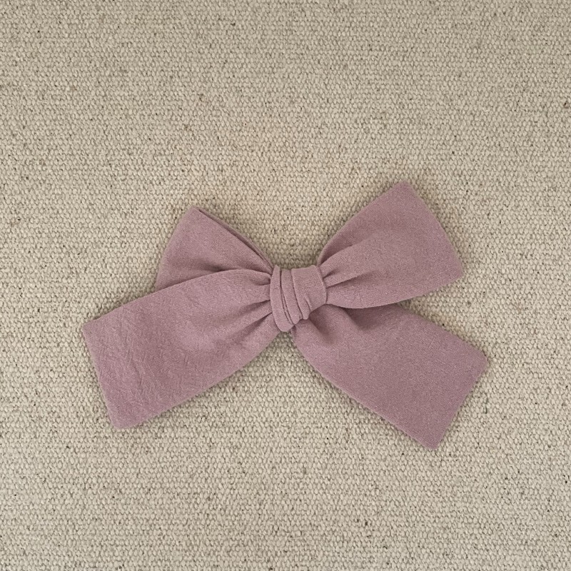 Le noeud est en coton lavé bois de rose , il mesure environ 14 cm et sa pince crocodile de 6,5 cm.