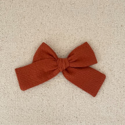 Le noeud est en coton gaufré terracotta , il mesure environ 14 cm et sa pince crocodile de 6,5 cm.
