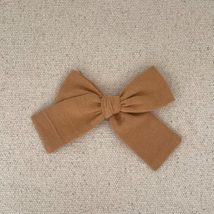 Le noeud est en coton lavé camel , il mesure environ 14 cm et sa pince crocodile de 6,5 cm.