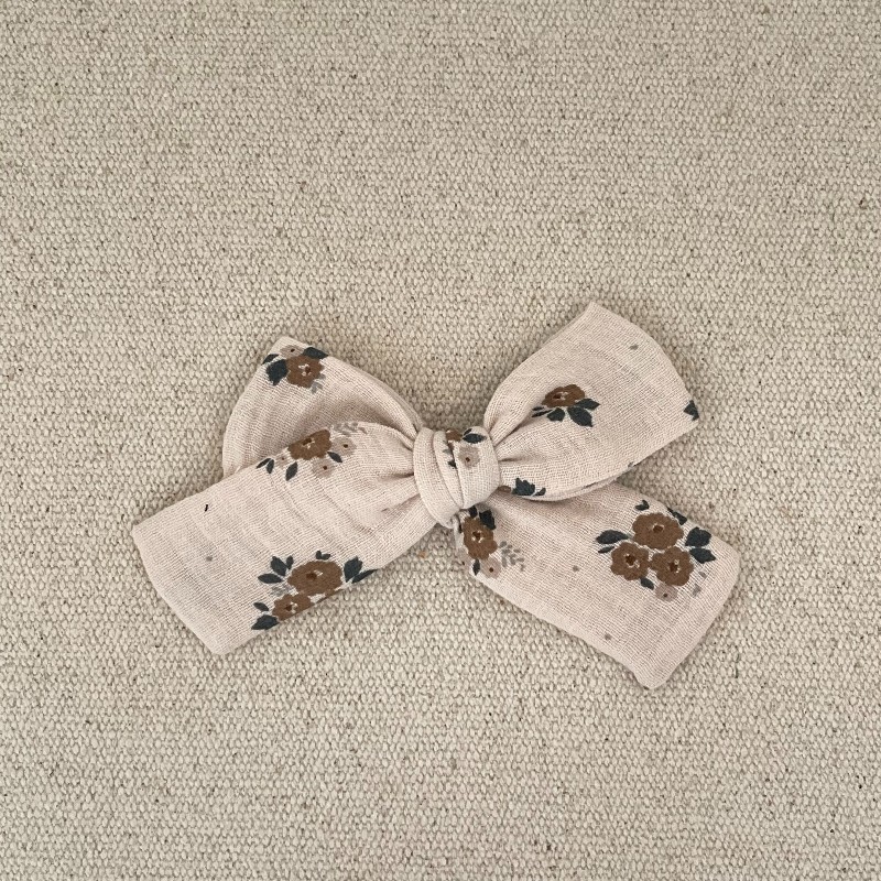 Le noeud est en coton lavé camel , il mesure environ 14 cm et sa pince crocodile de 6,5 cm.