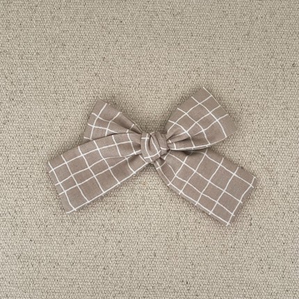 Le noeud est en coton vichy gris , il mesure environ 14 cm et sa pince crocodile de 6,5 cm.