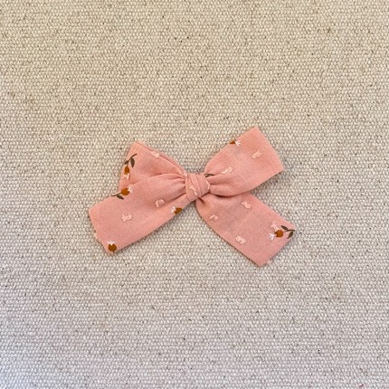 Le noeud est en coton vieux rose & plumetis blanc , il mesure environ 9,5 cm .