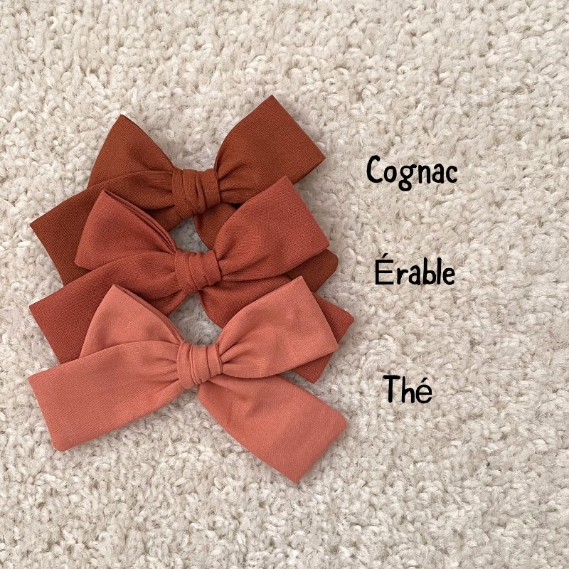 Le noeud est en coton uni de couleur érable , il mesure environ 9,5 cm .