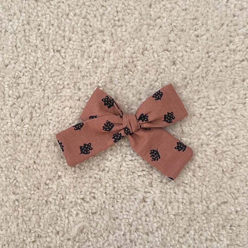Le noeud est en coton avec des feuilles , il mesure environ 9,5 cm .