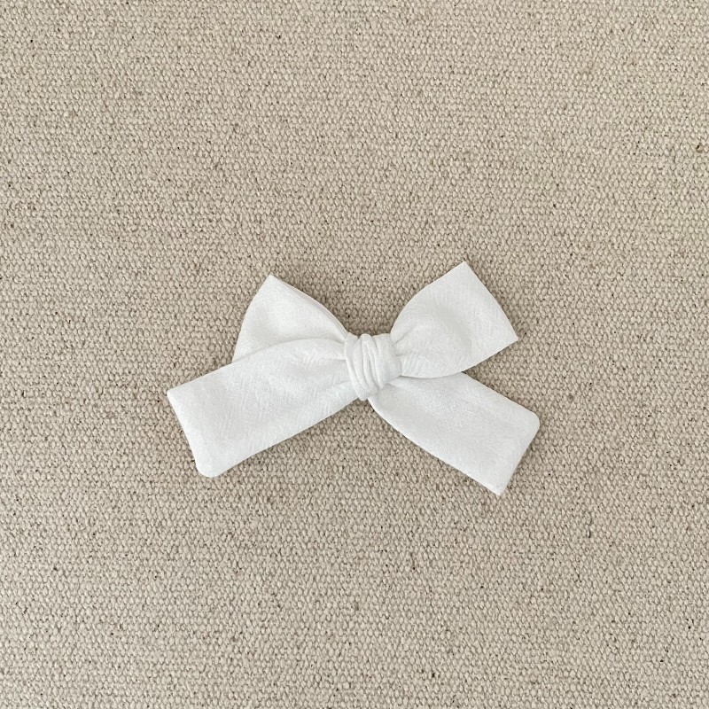 Le noeud est en coton lavé blanc , il mesure environ 9,5 cm .