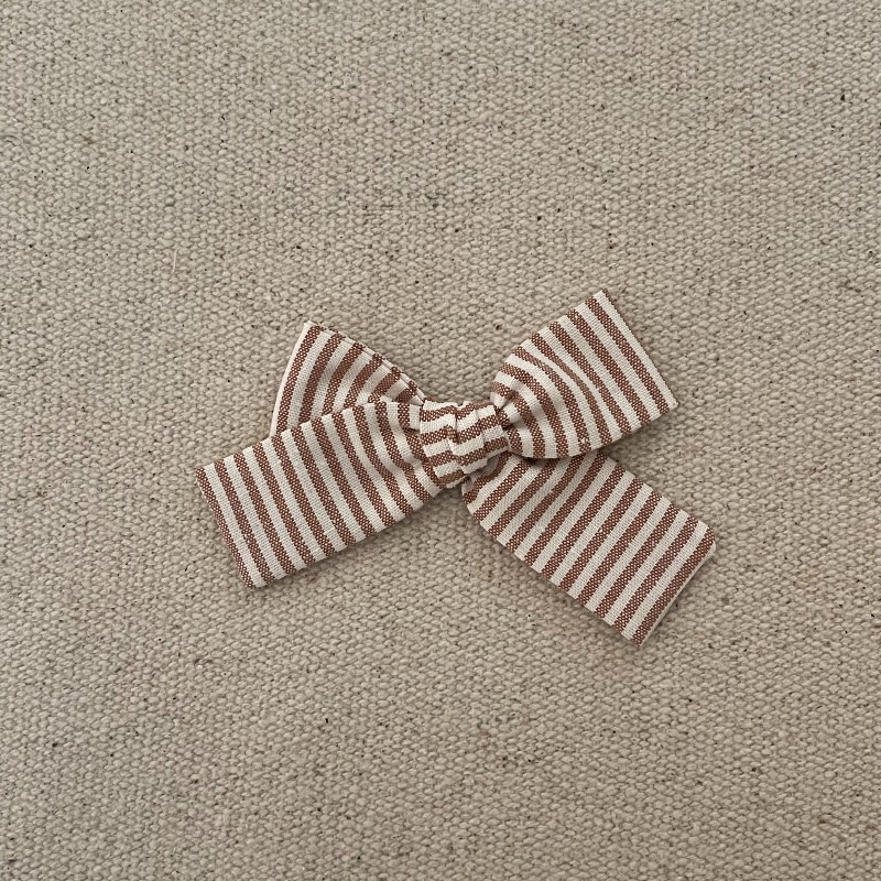 Le noeud est en coton rayé caramel , il mesure environ 9,5 cm .
