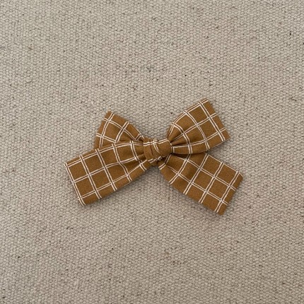 Le noeud est en coton vichy caramel , il mesure environ 9,5 cm .