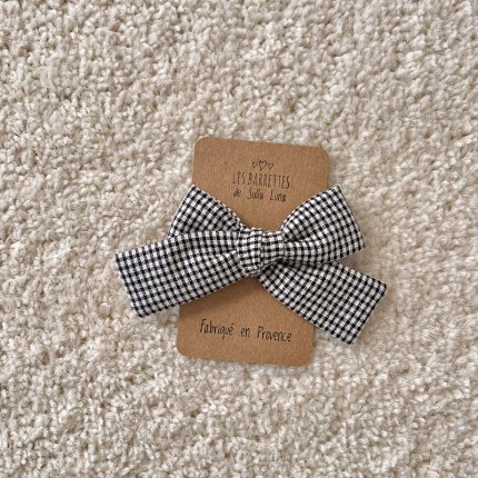 Le noeud est en coton vichy gris souris , il mesure environ 9,5 cm .