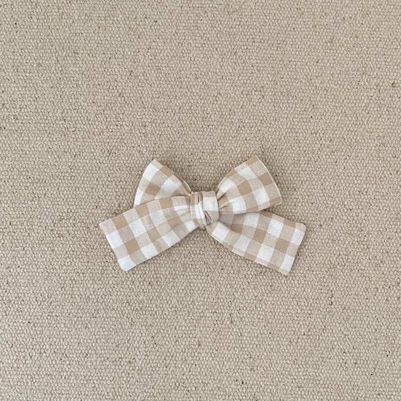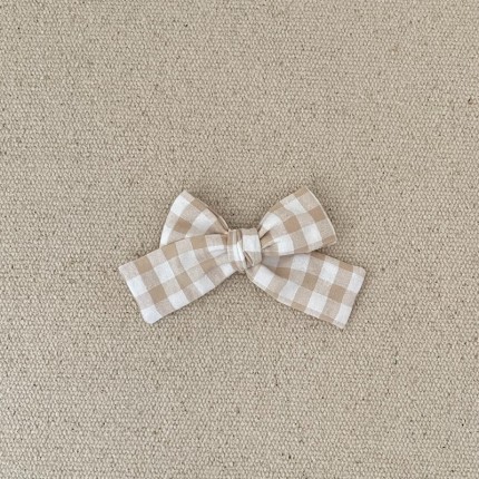 Le noeud est en coton vichy crème de lait , il mesure environ 9,5 cm .