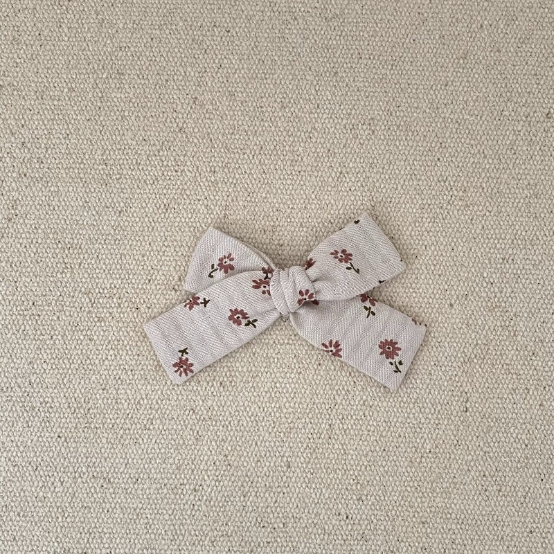Le noeud est en coton avec des petites feuilles , il mesure environ 9,5 cm .