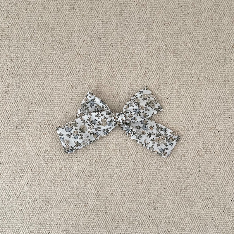 Le noeud est en coton avec des petites fleurs , il mesure environ 9,5 cm .