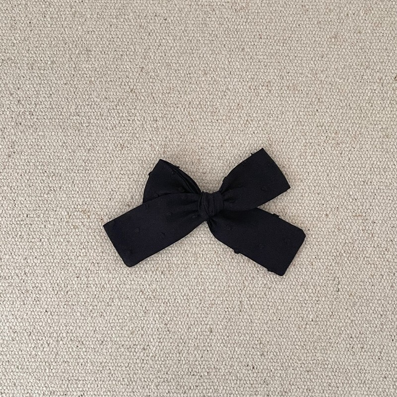 Le noeud est en plumetis de coton noir , il mesure environ 9,5 cm .