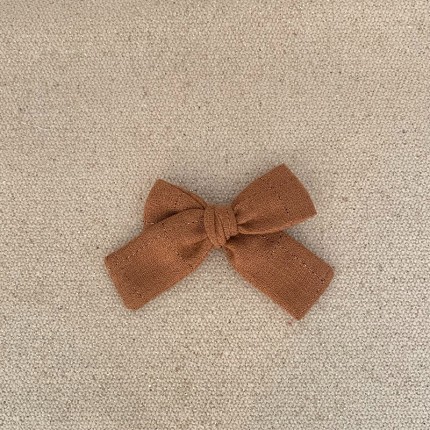 Le noeud est en coton lavé tomette , il mesure environ 9,5 cm .