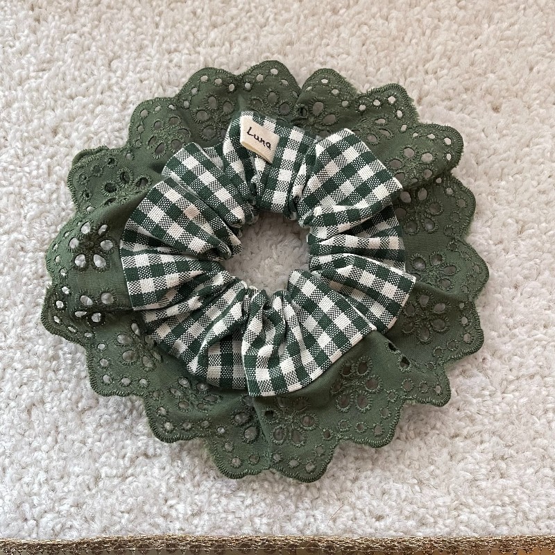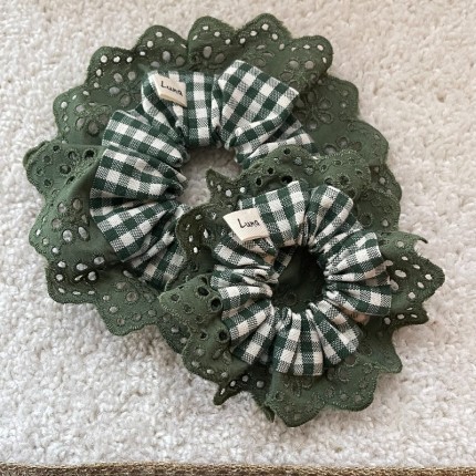 Le chouchou est assemblé par mes soins avec une dentelle .