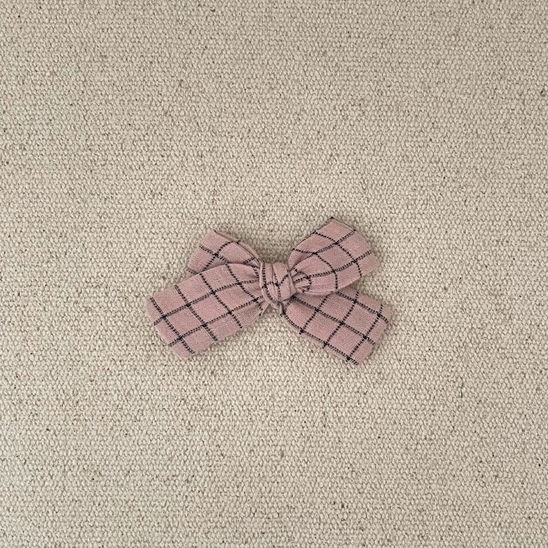 Le noeud antiglisse est en gaze vichy rose tendre , il mesure environ 7 cm .