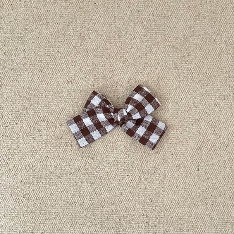 Le noeud antiglisse est en coton vichy chocolat , il mesure environ 7 cm .