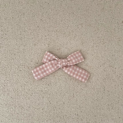 Le noeud est en coton vichy gaufré de couleur rose , il mesure environ 9,5 cm .