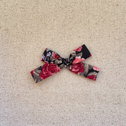 Le noeud est en coton brodé fleurs , il mesure environ 8 cm .