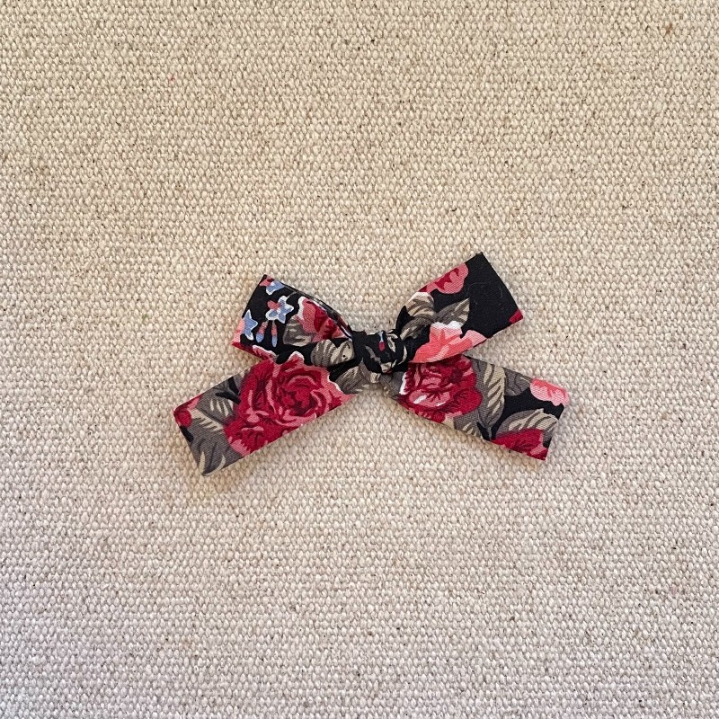 Le noeud noué est en coton avec des imprimés fleurs , il mesure environ 8 cm .