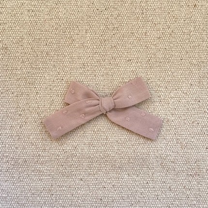 Le noeud est en coton vieux rose & plumetis blanc , il mesure environ 9,5 cm .
