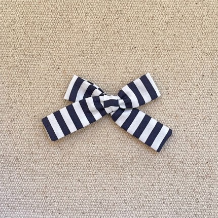 Sa pince doré rosé mesure 4 cm , le noeud est cousu dessus à la main .
