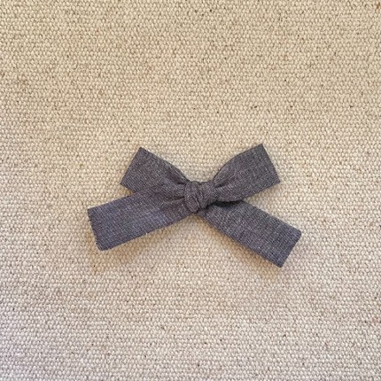 Le petit noeud est en coton vichy gris souris , il mesure environ 8 cm .