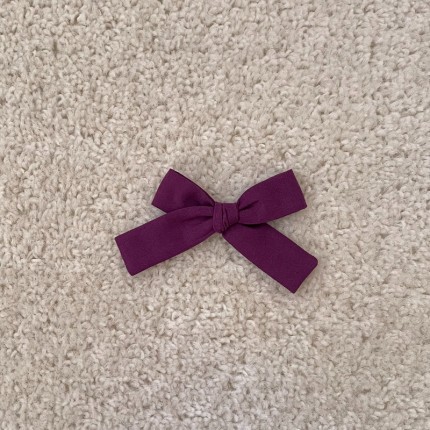 Le noeud noué est en coton uni de couleur violet foncé , il mesure environ 8 cm .