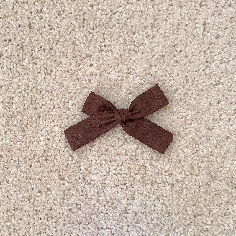 Le petit noeud est en coton lavé tomette , il mesure environ 8 cm .
