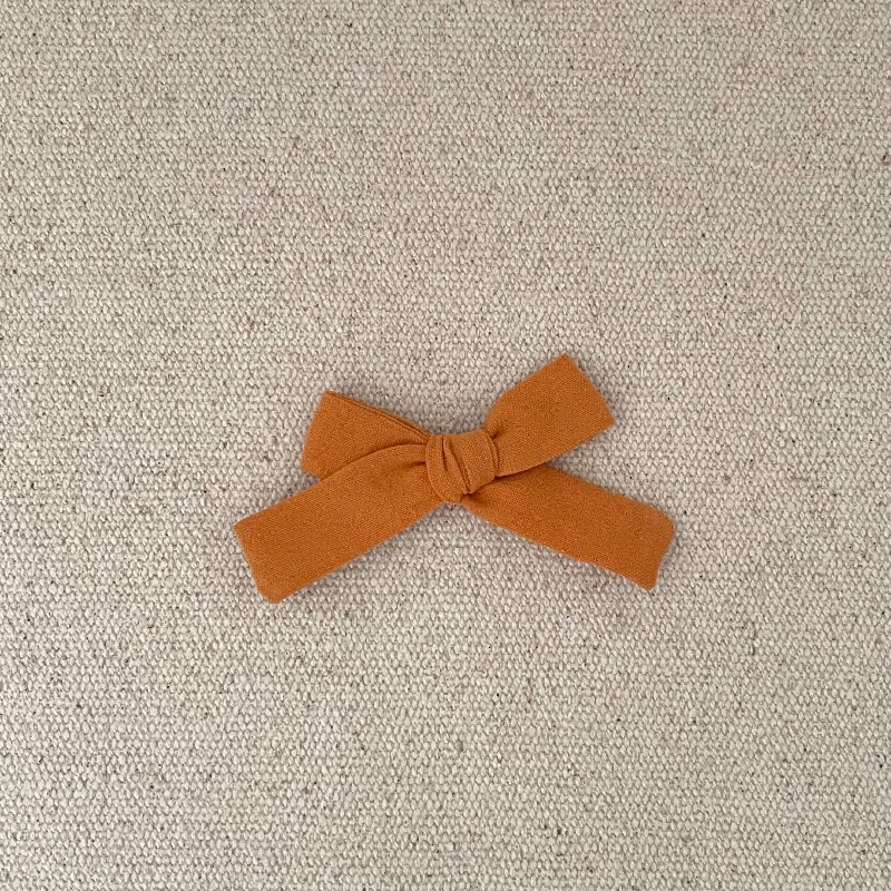 Le noeud noué est en coton lavé orange brûlé , il mesure environ 8 cm .