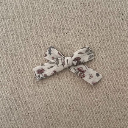 Le petit noeud est en gaze imprimé , il mesure environ 8 cm .