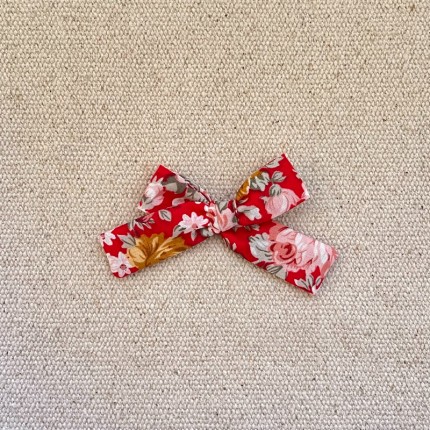 Le noeud noué est en coton rouge floral , il mesure environ 8 cm .