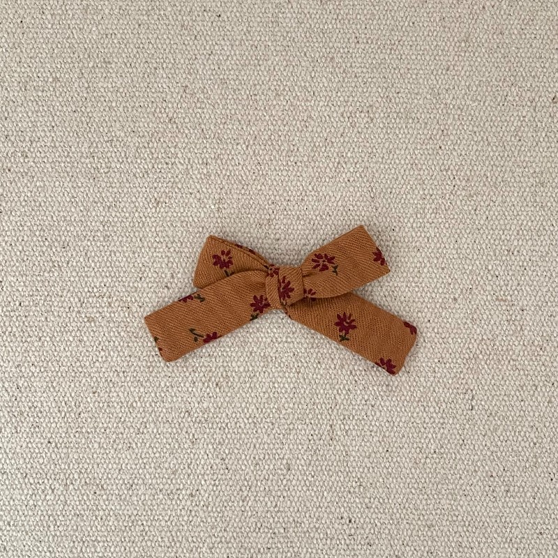 Le petit noeud est en coton lavé tomette , il mesure environ 8 cm .