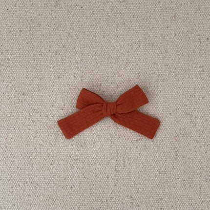 Le petit noeud est en coton gaufré terracotta , il mesure environ 8 cm .