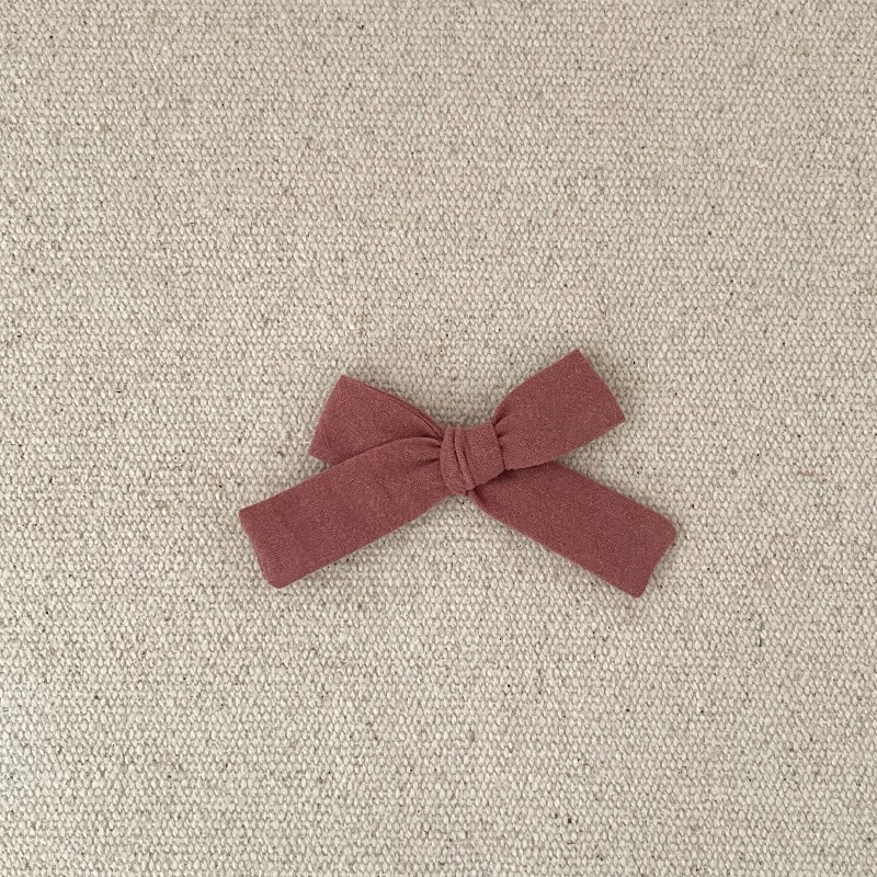 Le petit noeud est en coton lavé tomette , il mesure environ 8 cm .