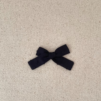 Le petit noeud est en plumetis de coton noir , il mesure environ 8 cm .