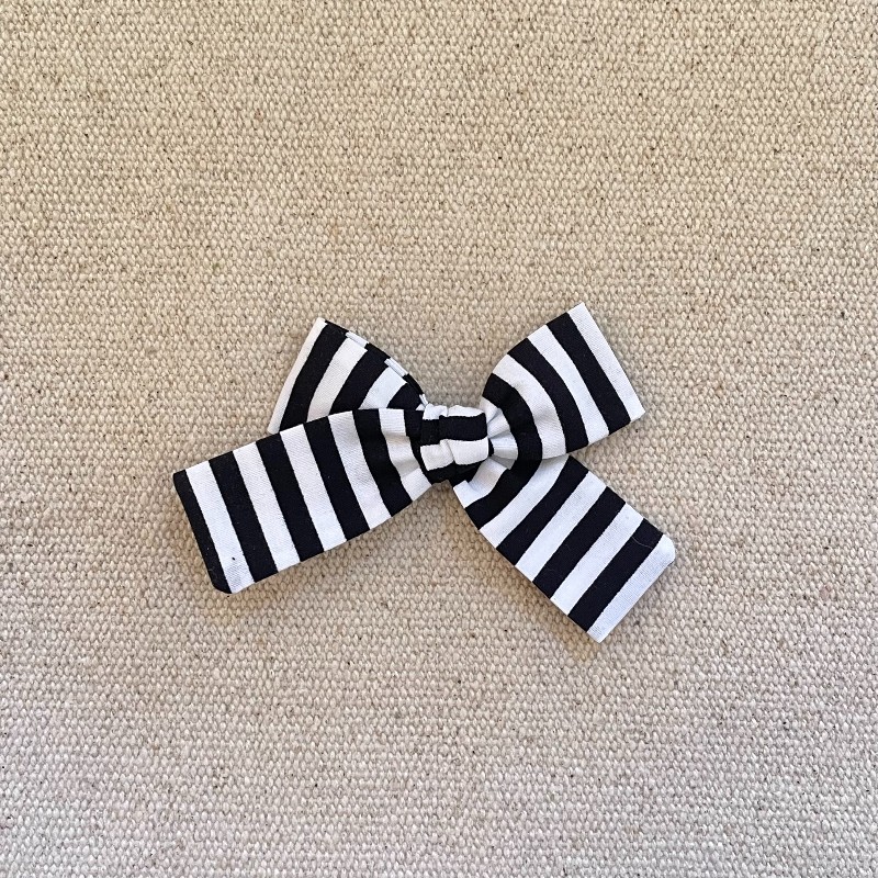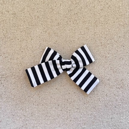 Le grand noeud est en coton rayé noir , il mesure environ 9,5 cm .